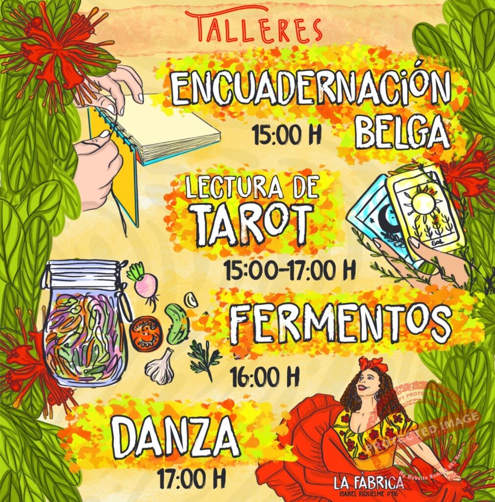 El mismo día del evento, antes del concierto, se estará realizando una jornada de talleres (encuadernación, fermentos, danza), un Baratillo, venta de comida y lectura de Tarot a bajo costo, todo esto para costear los gastos de traslado, alimentación, estadía y honorarios de lxs artistas invitadxs. La Colectiva de Mujeres y Disidencias es una agrupación autogestionada que busca acompañar y tejer redes de apoyo mutuo, para promover la igualdad de género, el respeto y la tolerancia, a través de acciones, intervenciones y eventos culturales.